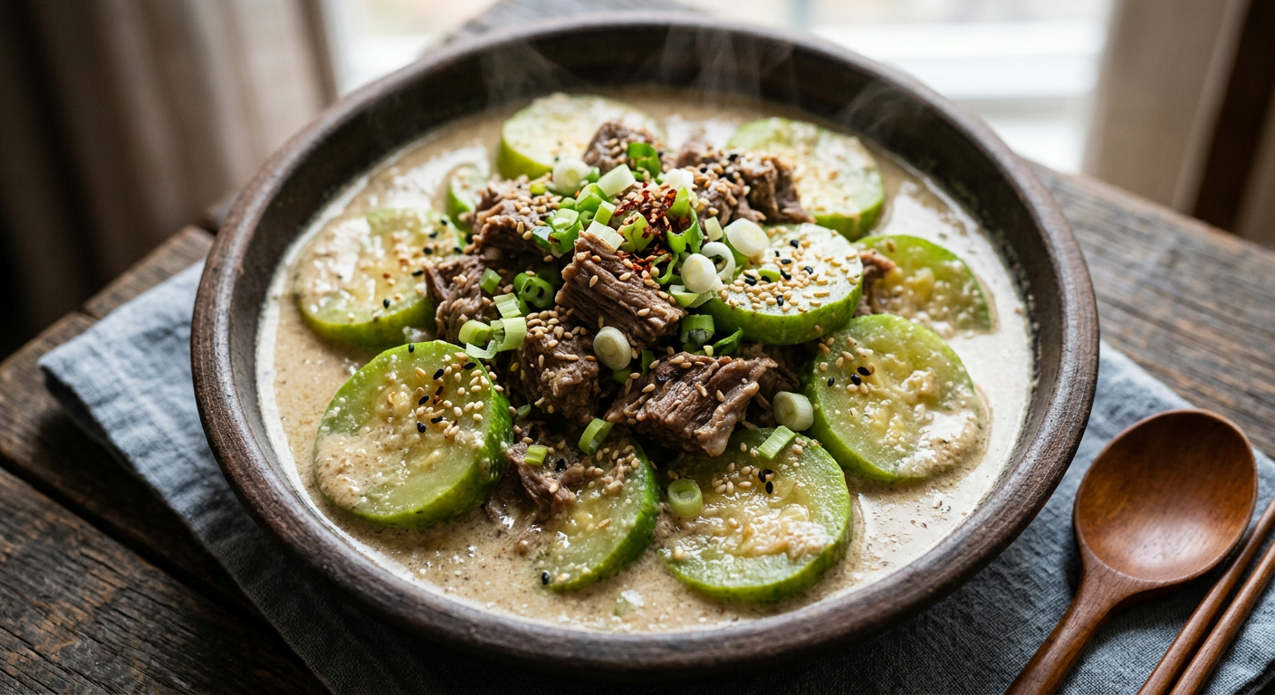 겨울철 아이 성장 발달에 좋은 '소고기 애호박 들깨찜' 레시피를 소개합니다. 부드럽고 고소한 맛으로 아이들이 좋아하는 영양 만점 저녁 메뉴!