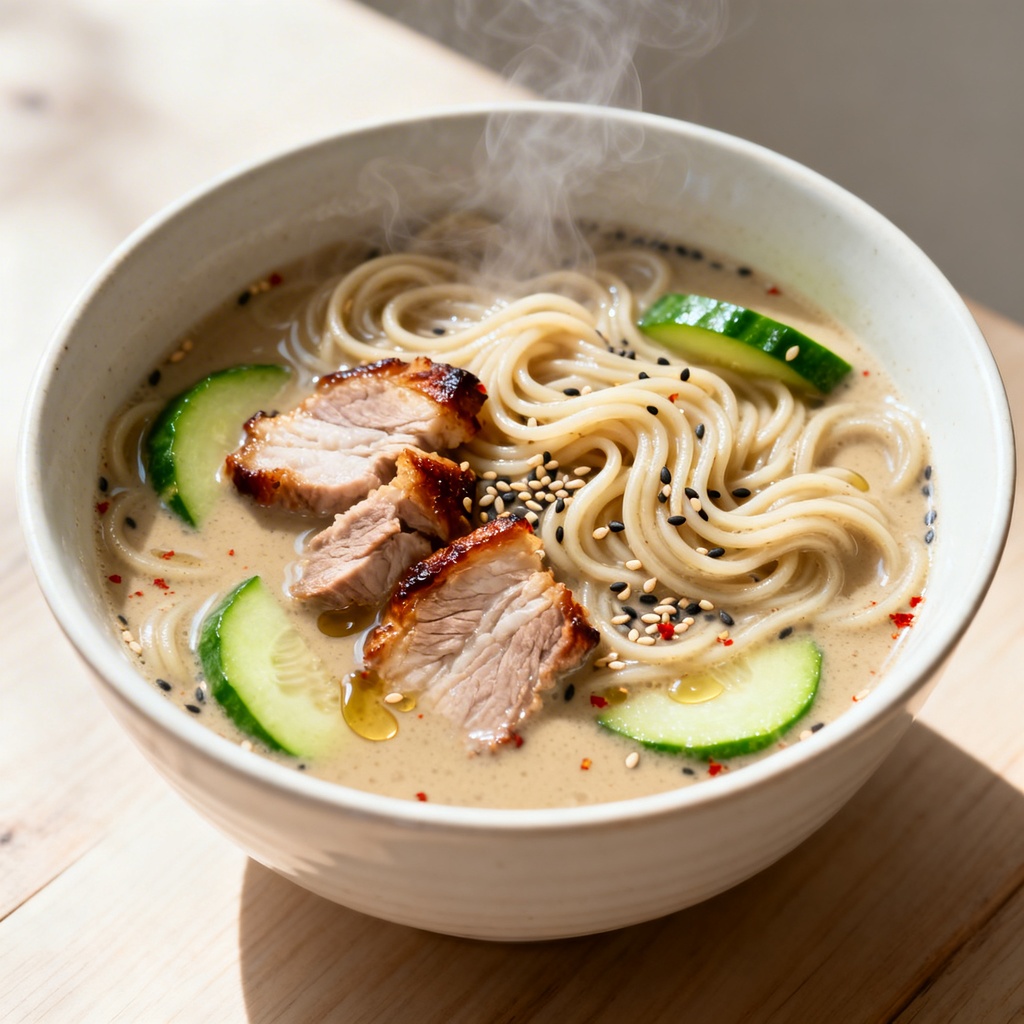 봄날 저녁, 아이를 위한 특별 메뉴! 부드러운 식감과 고소한 들깨의 풍미가 일품인 '돼지고기 애호박 들깨 국수' 레시피를 소개합니다. 영양 만점, 소화 잘 되는 건강 요리!